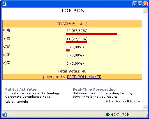 尚、コメント欄も設けてあります。コメントいただければと思います。また、期日経過後はこの投票フォームは外して結果のみ掲載いたしますのでよろしくお願いします。